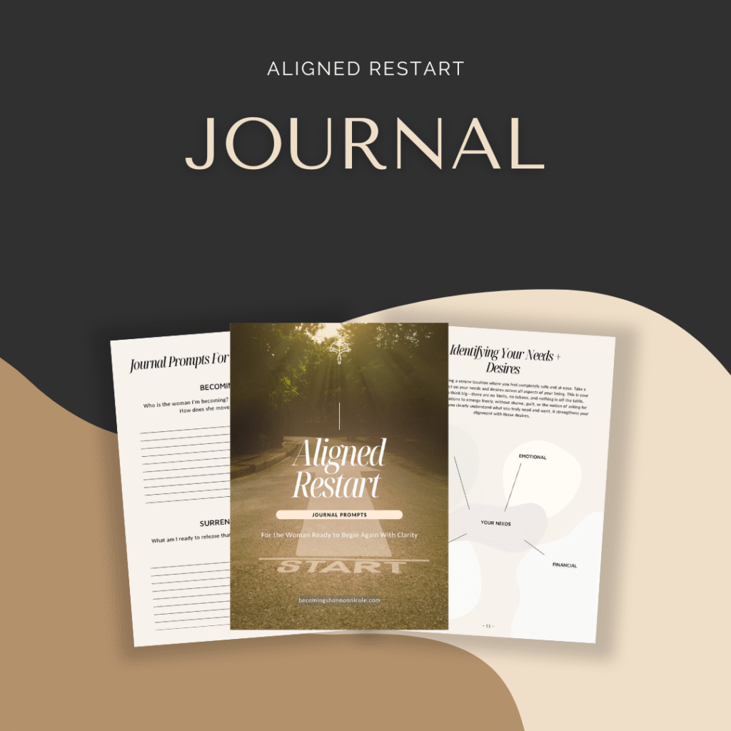 Description: 11 Soul-Stirring Journal Prompts crafted to help you release shame, reflect on your past without judgment, and reclaim the woman you’re meant to be. This journal is for you if you’re in a season of change and craving a fresh start.